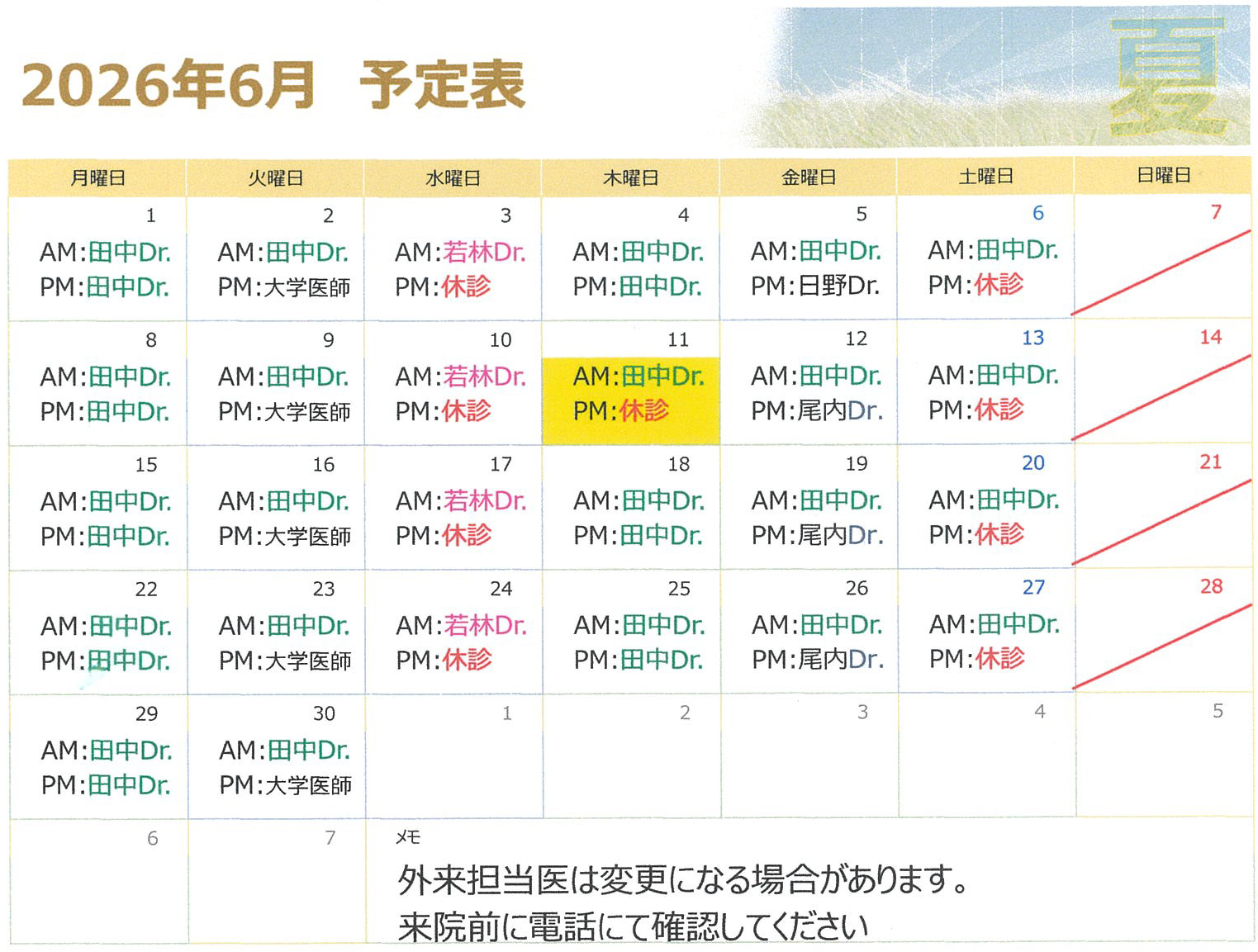 ※土曜日は予防接種のみとさせていただきます。